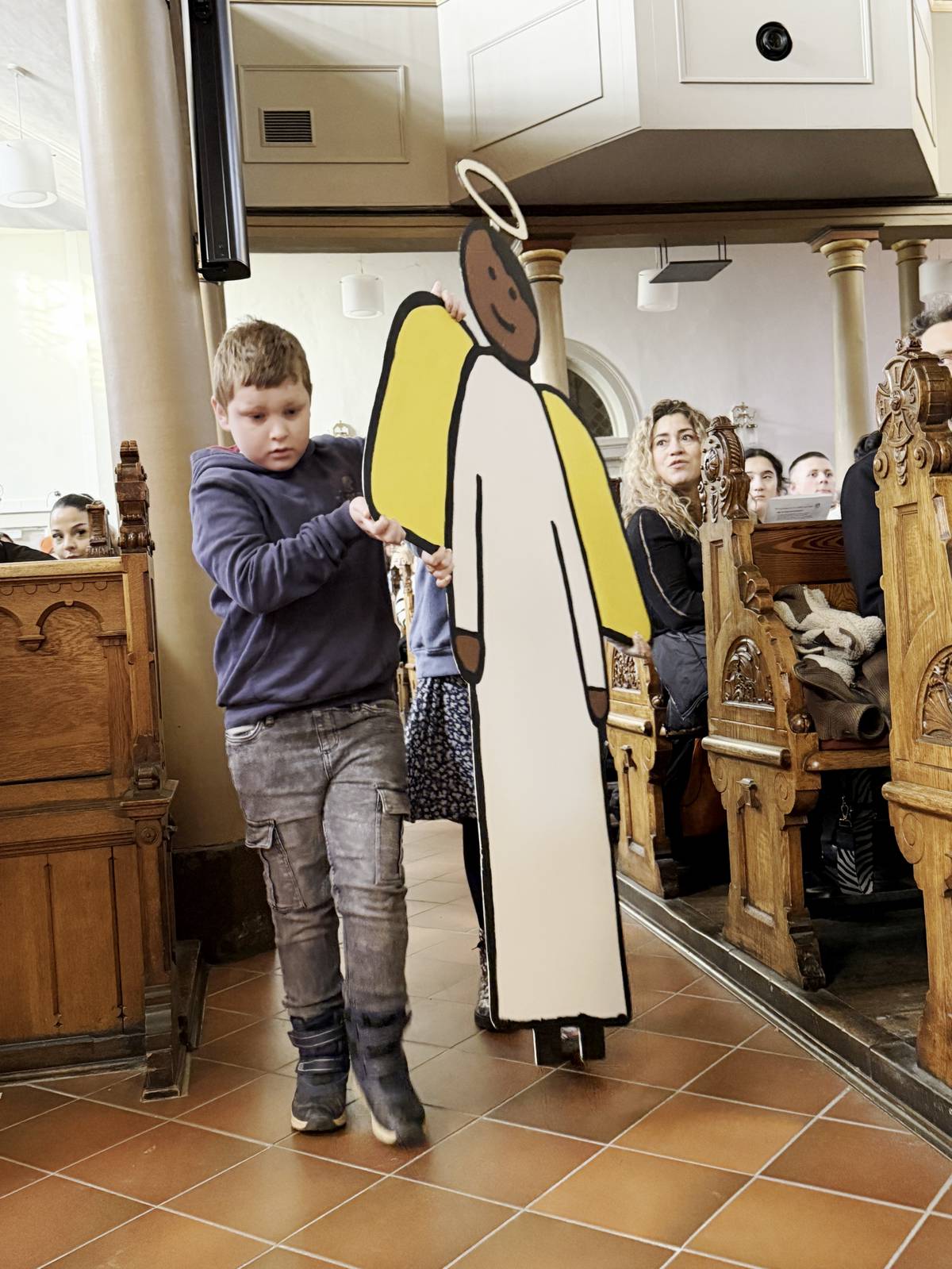 Unter dem Motto “Wir machen uns auf den Weg” fand der diesjährige Weihnachtsgottesdienst der Schule an der Höh in der Erlöserkirche statt. Schon im Vorfeld hatten sich die verschiedenen Schulstufen mit den verschiedenen Protagonisten der Weihnachtsgeschichte befasst und sich nun auf den Weg zum Gottesdienst gemacht. Zur Kirche brachten die Klassen nicht nur ein Bild mit, sie stellten aus großen Figuren ein riesiges Standbild, anhand dessen sich die Weihnachtsgeschichte verdeutlichte. Pastorin Katharina Thimm und Pastoralreferent Jan-Hendrik Ilk leiteten durch den ökumenischen Gottesdienst. Mit Gebärden, vielen Liedern und tollen Bildern wurde der Gottesdienst elementar und mit vielen Sinnen erlebbar. Am Ende gab es für alle Besucherinnen und Besucher noch einen Button mit auf den Weg, als Erinnerung daran, dass Gott mit allen gemeinsam auf dem Weg ist.