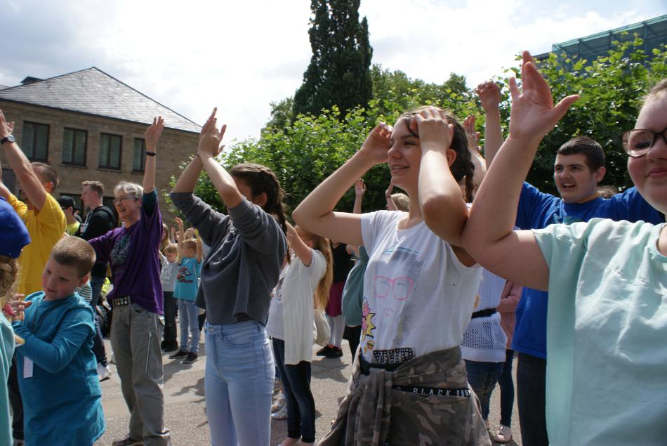 Am 11.7.2018 haben ca. 30 Schülerinnen und Schüler der Unter-und Mittelstufe einen besonderen Tag im Bistum Essen verlebt. Wir hatten uns im letzten Jahr für ein Inklusions-Tanzprojekt der Jugendabteilung des Bistums Essen angemeldet. Lüdenscheid gehört nämlich zum Bistum Essen.