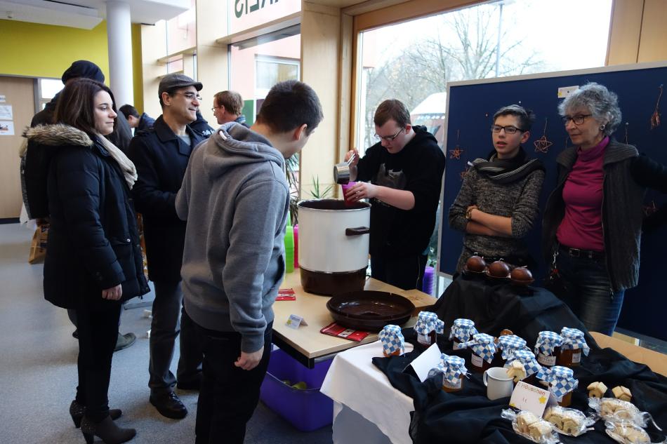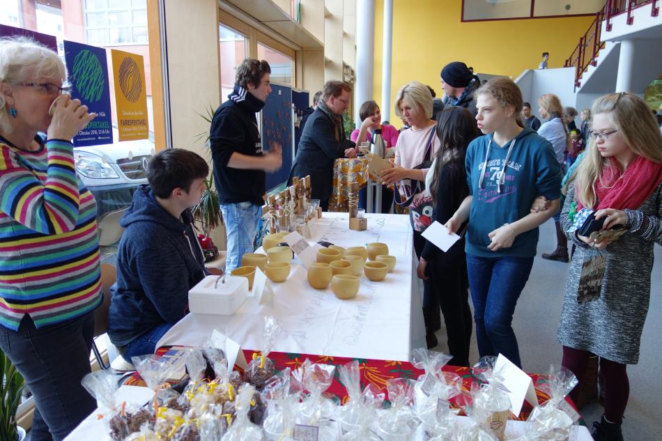 In den letzten Wochen haben die Schülerinnen und Schüler aus den Oberstufenklassen viele tolle Dinge hergestellt, die sie heute auf dem Hupendo-Markt verkauft haben. Viele Eltern, Nachbarn und Interessierte kamen, um zu schauen, zu kaufen und sich an den schönen Dingen zu erfreuen. Der komplette Gewinn wurde von der Oberstufe an die Hupendo-Schule aus Nairobi-Kenia gespendet. Die Schülersprecherinnen Lara und Hatice überreichten Elke Schmidt (Förderin der Hupendo-Schule) 1.250,00€.
