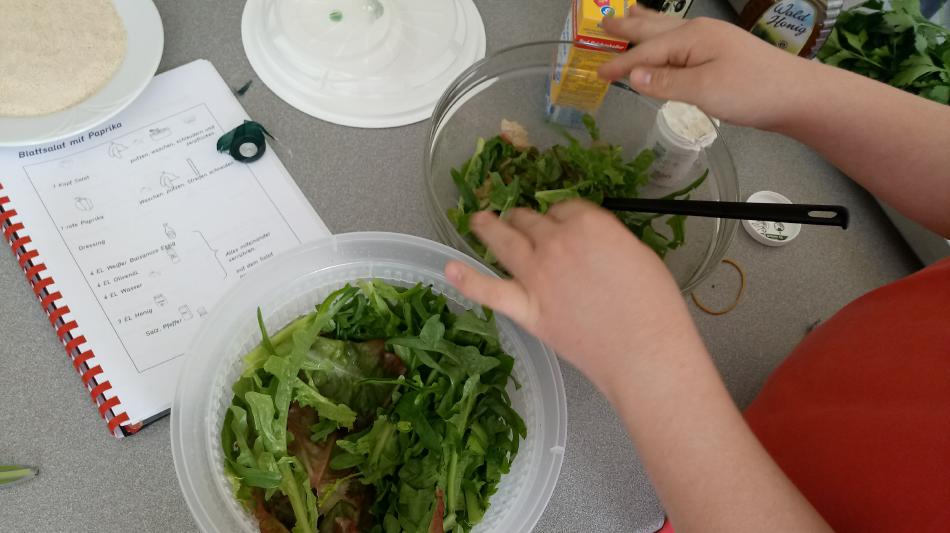 Nach unserer Umweltschutzprojektwoche und der Klimademo haben wir uns in der Oberstufe 2 gefragt, warum die Tomaten im Supermarkt eigentlich aus Spanien kommen müssen, der Brokoli aus Israel und die Kartoffeln aus Marokko? Die Abgase, die beim Transport entstehen, heizen unsere Erde auf jeden Fall weiter ein! Für den Hauswirtschaftsunterricht bekommt die Klasse O2 nun jeden Dienstag eine Biokiste von einem Bio-Bauern aus der Nähe der Schule. Auf den Äckern des Bauern werden keine Gülle und Gifte verspritzt, die unser Grundwasser verunreinigen.