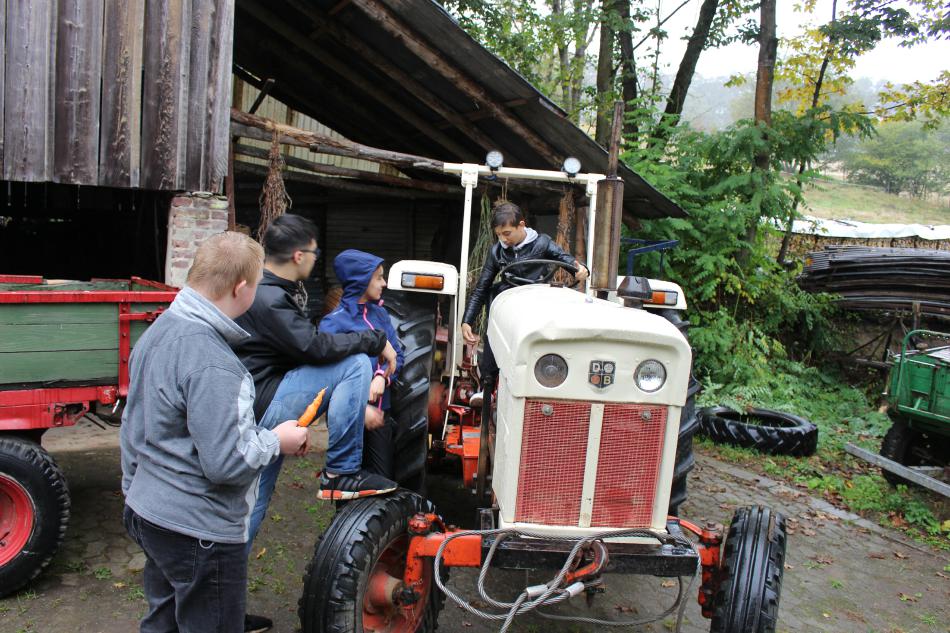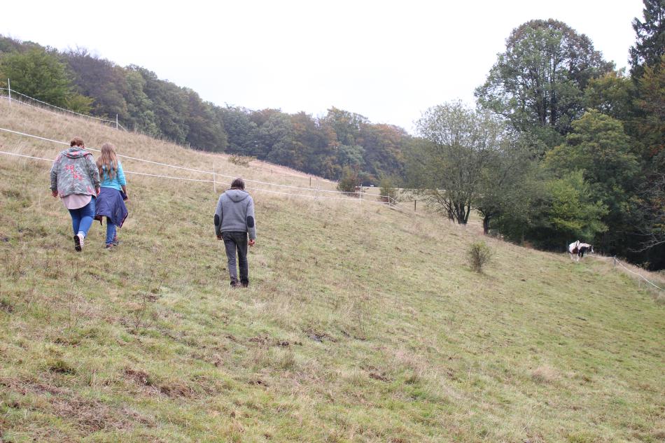 Heute haben wir den Bauern Walter Schäfer auf seinem Hof besucht, der uns immer die Gemüsekiste bringt. Dort konnten wir sehen, wo das Gemüse herkommt, das wir jede Woche bekommen. Wir waren erstaunt wie gut die Möhren riechen, wenn sie aus der Erde gezogen werden. Zudem haben sie super geschmeckt! Über viele Jahre hat der Bauer mit der eigenen Hand Terrassen mit Hecken und Baumreihen angelegt. Dazwischen liegen viele kleine Felder auf denen noch mit der Hand gearbeitet wird und wo das Leben blüht. Wir waren natürlich von den Tieren sehr begeistert. Die Pferde, Kühe und Schafe leben auf dem Hof, um die Felder abzugrasen und die Vielfalt der Insekten und das Wachstum der Pflanzen zu fördern. Als wir wieder zur Schule fahren mussten, fragten die Schülerinnen und Schüler sofort, wann wir denn wieder zum Hof Stillebeul fahren.